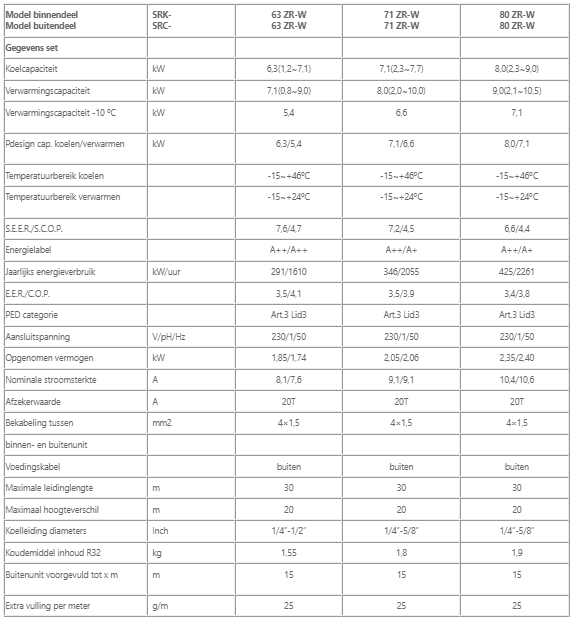 Mitsubishi heavy SRK ZR-W à 6,3KW + 7,1KW + 8KW