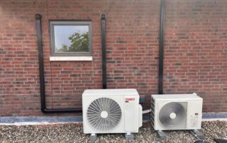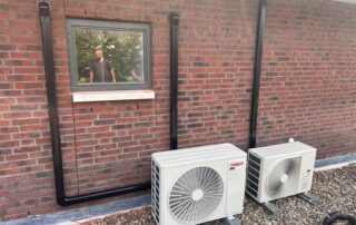 Bij deze woning is vloer verwarming toegepast in combinatie met een nieuwe cv-ketel met een hybride systeem aangesloten. Ook hebben wij zonnepanelen geplaatst op het nieuwe stroom verbruik. Om in de zomer te koelen en in de winter bij te verwarmen hebben wij op de zolder en eerste verdieping airco’s geïnstalleerd.